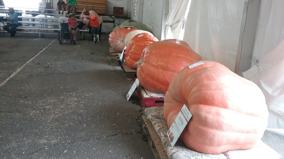 The line-up of pumpkins at the NC State Fair.