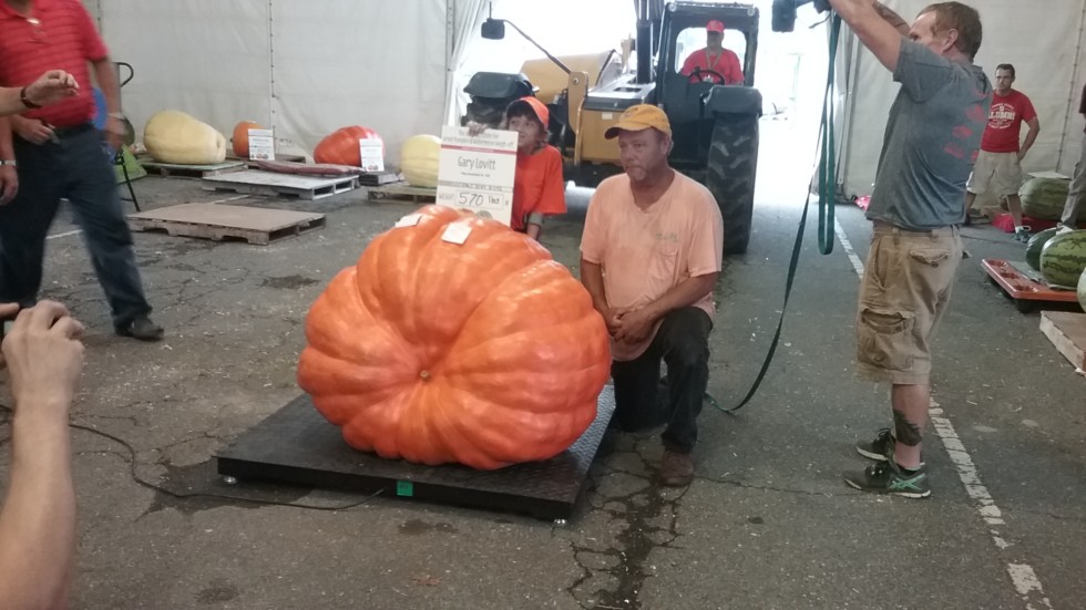 Gary and TJ Lovitt's 570 lb pumpkin won the HD