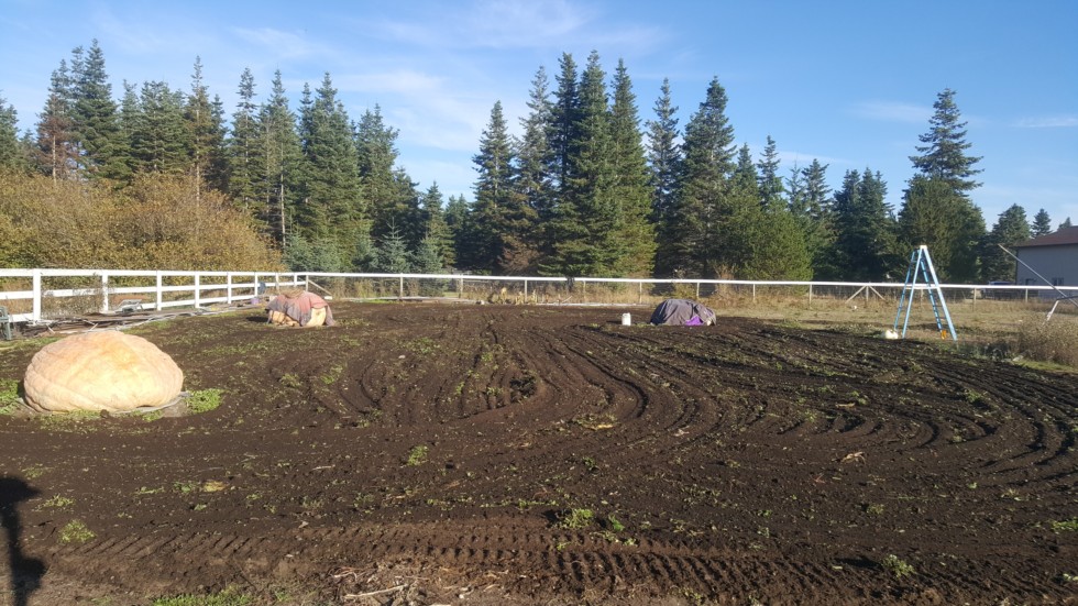 The patch is all cleaned out and most of my toys are put away. Two of the pumpkins are sold for display, and the 1844 on the right will go to the Terminator weigh off and regatta Saturday in Tualatin, Oregon. I just need 1562 pounds to get my 5400 pound club patch. I've got manure ordered, so as soon as that's all spread, I can seed my rye cover crop and finish the 2017 season.