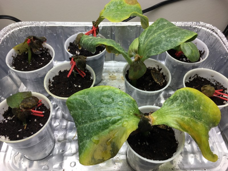 Watermelon scion to gourd and AG rootstock grafting attempt #1 = EPIC FAILURE. Left them in dark, heated, 100% humidity healing chamber for 5 days and this is what I found today.