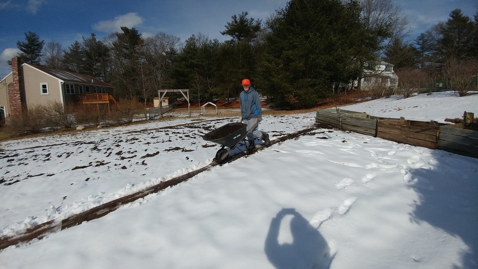 Soils not frozen. Time to move some compost and dirt