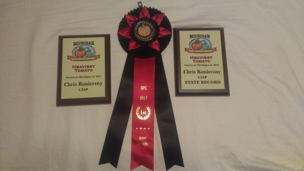 Just received a plaque for largest tomato grown in michigan at our spring seminar for the second year in a row !!!! :-)