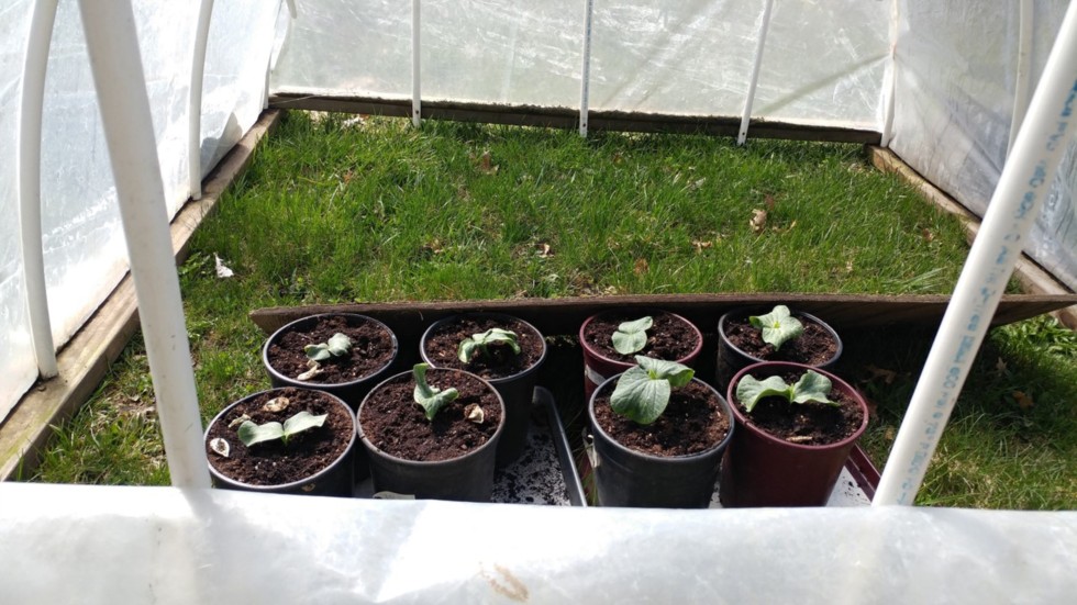 Keeping the pumpkin plants outdoors in the day. Getting them familiar with a full dose of sunlight, inside the warm mini green houses.