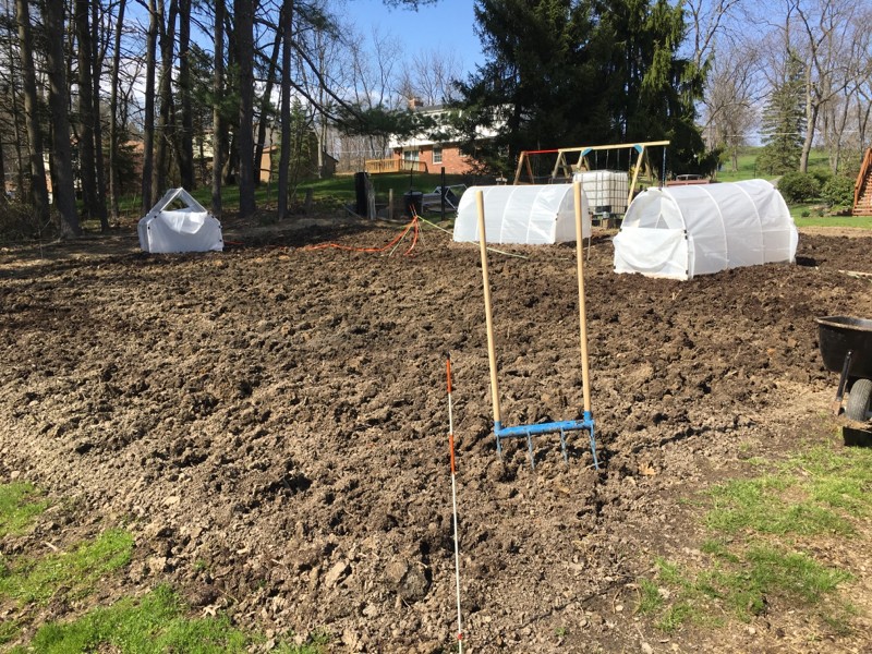 Finished broadforking the rest of the patch. Dug up lots of clay.