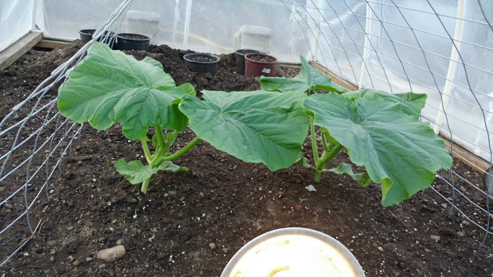 I have two plants in every planting area. Today I have to make my cull decision, and go from 8 to 4 pumpkin plants.