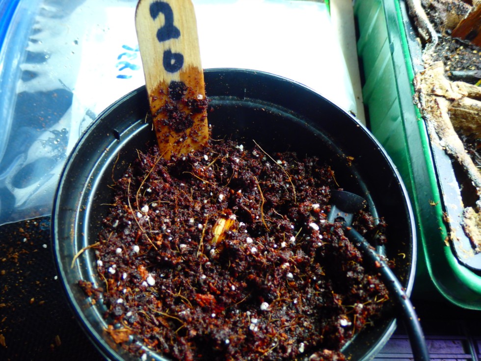 2002 looks like it finally is going to pop. Dug around surface on 2118, 1836, and 1526. They weren't even close to popping. Dug up 1526 and pushed gently on seed. Pus came out so threw it away. 1836 was still solid. 2118 looked like a root was barely starting to form. Put 1836 and 2118 seeds into their own Ziploc bag wrapped with a damp paper towel to germinate tried and true method. Hopefully I can get them to pop this way. Heating mat is at 85 degrees.