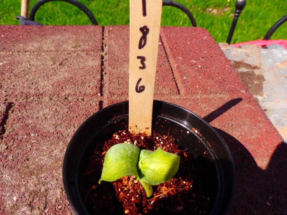 1836 enjoying the sunshine. Looks like it may get its first true leaf before the 2002 despite being germinated a week later.