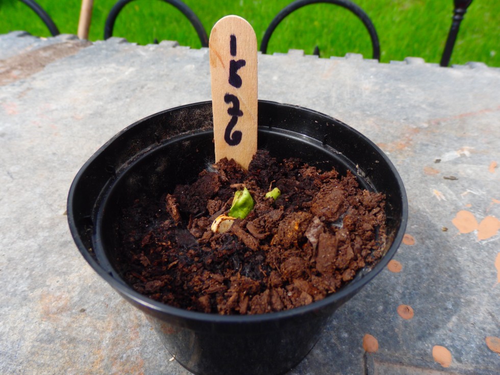 1526 seed starting to germinate. I accidently cracked one of the sides of the seed shell when I was sanding the edges with a nail file. That's why the seed looked like it went through a wood chipper. Cots will probably look deformed because of the cracked shell.