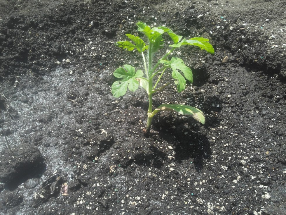 And this is the grafted 259 Mitchell plant. I planted these two watermellon plants in honor of marvin mitchell who passed away earlyer this spring.