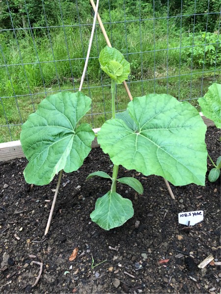 Long gourd is reaching for the trellis.
