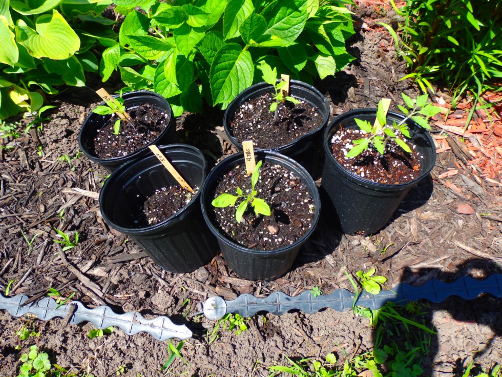 Bnot's tomato plants that he traded me. Have to replant one of the 5.24 Mega Mutts that I had an oops on the way home from the trade. Your plants are pretty good hands Bnot.