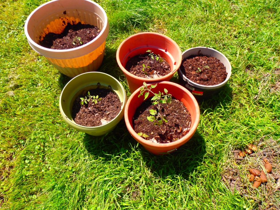 I looked down at the strip of grass between my driveway and the fence. I saw 9 tomato plants were growing there and harvested them. Apparently some of the cherry tomatoes that my neighbor was growing had fallen to the ground and the seeds from the tomatoes germinated. I gave 2 plants to each neighbor along side me. It's funny that the cherry tomatoes plants I started in the house all died before I could move them outside.