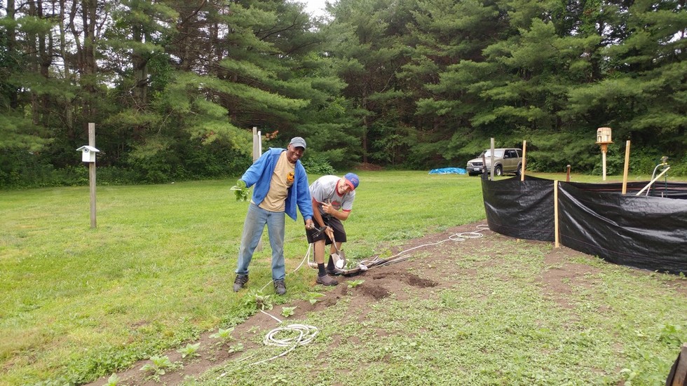 Ron's long time friend Calvin, helps keep WOW shipments going out fast. Here they are transplanting the Sunflowers.