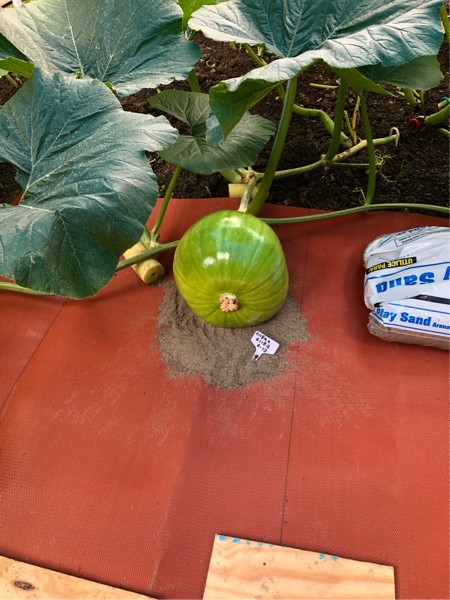 Got mill fabric and sand under my 3 fruit today. Still nothing set on my 2118 Jutras B plant and I kinda damaged my main vine tip trying to clean mud off of it with 10:1 bleach solution. When will I learn?!?!? Here�s Gangrene at 14 DAP.