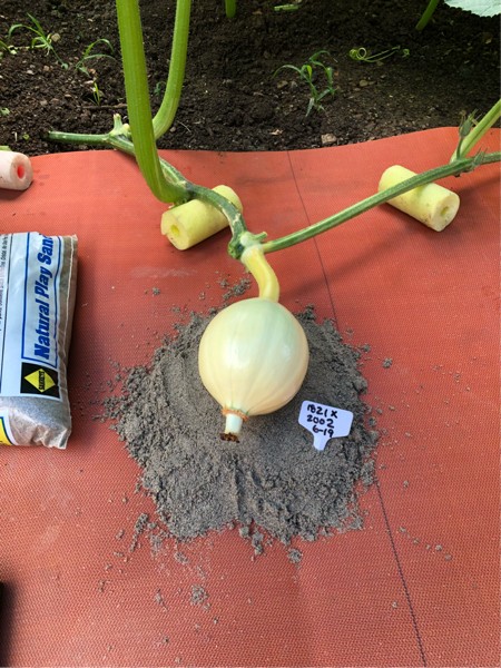 1821 Checkon @ 8 DAP. Checkers is her name. Terminated the main vine at the fruit because it just wasn�t working in this small patch.
