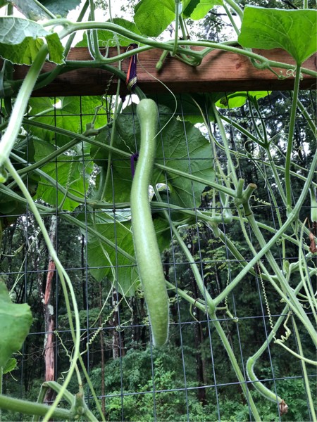 Long gourd starting to stretch its legs.