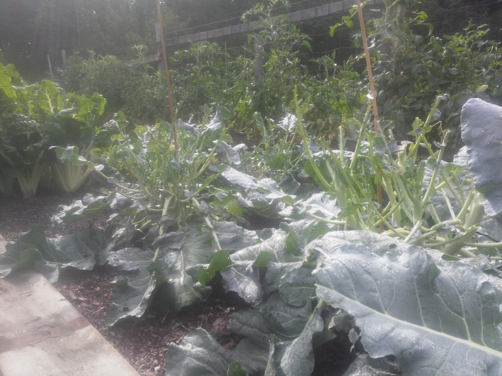 More dammage here and you can see my gaint tomatoes are right behind the broccoli plants !!! I set the trap were i think he is getting in but he is to smart to go in. But he didn't seem to get in today so thats good news !