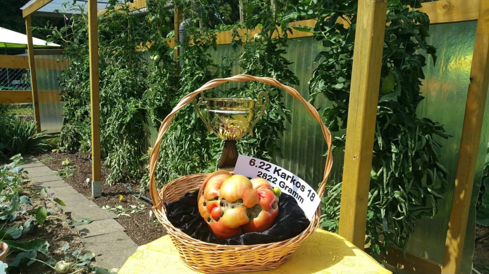 Here is a picture of udo Karkos tomato plants along with his 6.22 baby and german record !!!