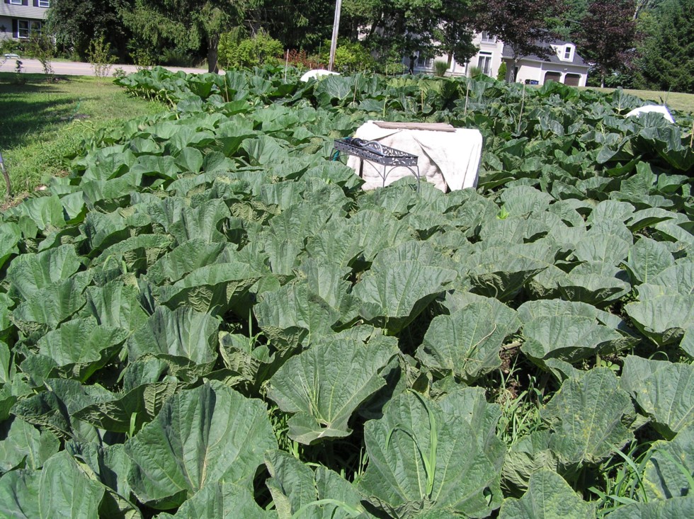 My Bushel Gourd Plant looks good and healthy. All vines buried and rooting. Lots of Leaves.
