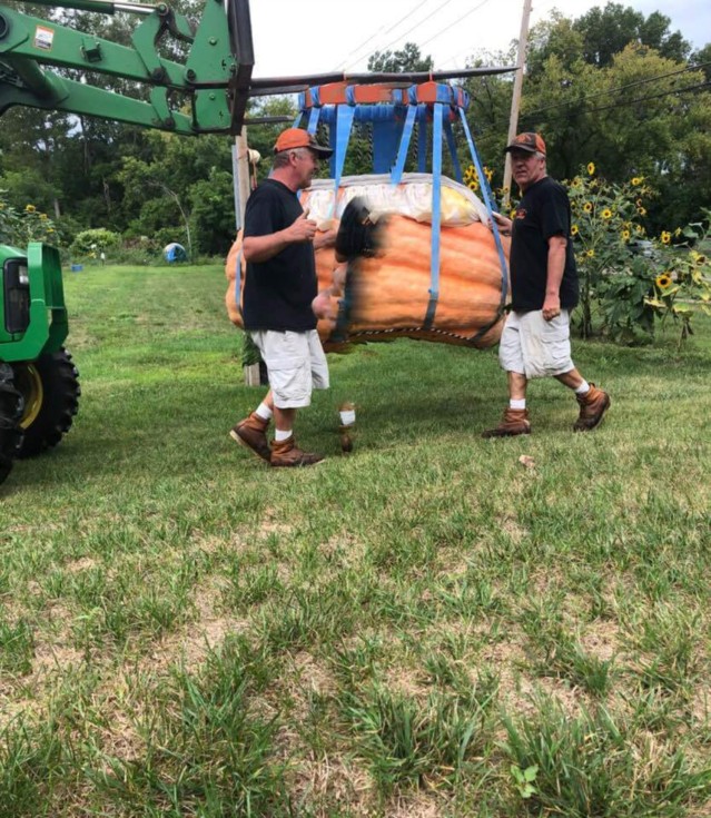 Mark won the michigan state fair last night with his 1298 lb pumpkin he called big bubbles !!!
