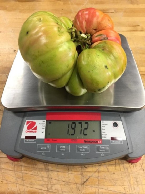 1.95 pound tomato from a 5.56 Karkos seed. Tomato stopped growing once I put it in a sling. I thought it was going to get much bigger when I put it in a sling.