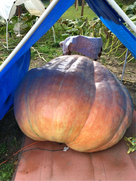 1821 Checkon still gaining 3-4 lbs per day. Estimated at 1167 lbs and I�m happy with how she�s doing. Having issues with main vine but seems to be dried up now.