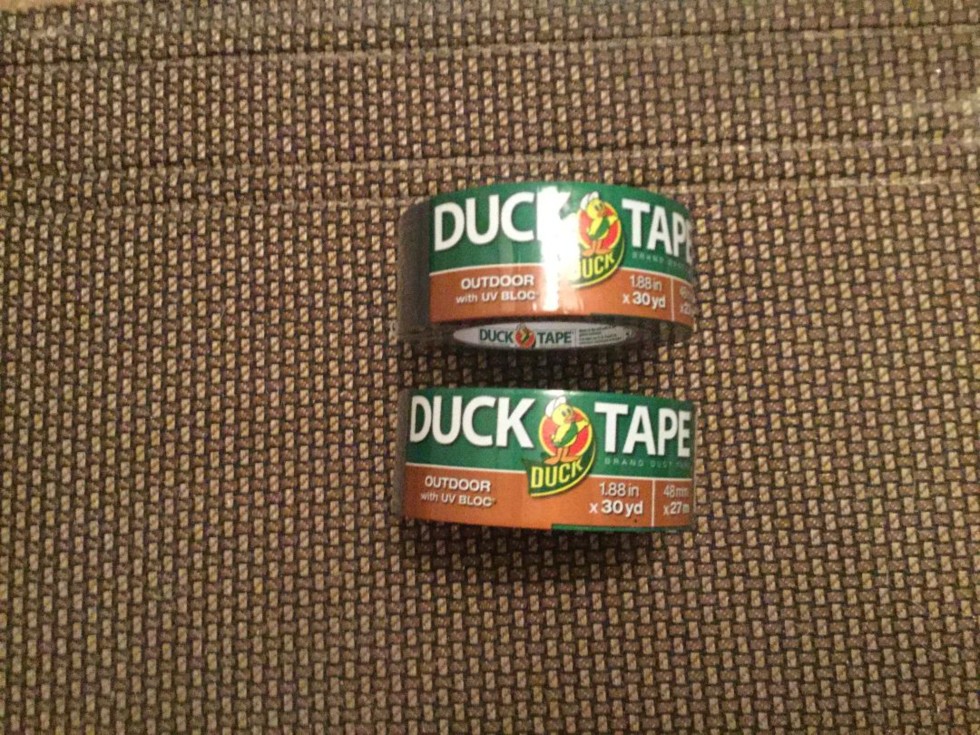 Outdoor Duck Tape for the Win. Too bad it is going to be difficult to finish greenhouse with rain forecast for next few days.