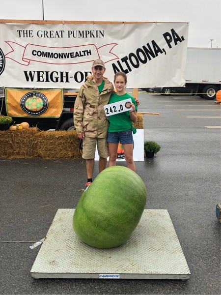 My daughter�s bushel gourd was big enough for the state record but there was another one there even bigger so she came away with second place at 242 lbs.