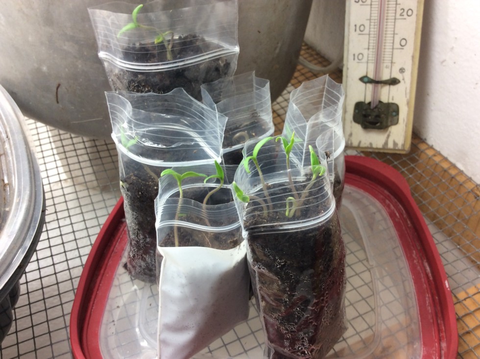 Use the seed bag as a grow bag. (It might have the seed label on it already)... The tap roots reached the bottoms of the bags today... Today was 6 days after planting. It's a temporary home... the seedlings could be divided and reported after tearing/cutting the plastic away. It's kinda convenient... if you are in a hurry to get your seeds into dirt!