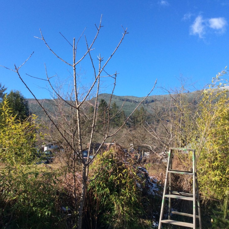 I tried to leave all the two year wood on this cherry. I will prune it down farther after it bears fruit. Normally I would cut more. Instead, I will prune it down farther in July at the same time I'm harvesting any fruit. I think this idea might work well, it's worth a try. Btw... Fruit size is all about the phloem... That's what I've learned so far.