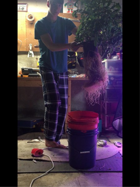 Here is a picture of the roots on the giant tomato plant. They are now filling the entire bucket. :)