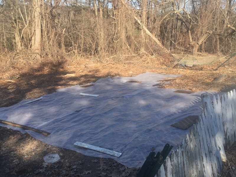 Covered up part of my new pumpkin patch. Why? Supposed to rain 1-2 inches on Friday. My patch is already soaked, I can�t afford to let it get more wet. It�s March 20th! May seem like a lot of time but with a new patch like this I don�t have much time. When the excavator comes in March 30th it can�t be wet. I gotta try to dry it out. Where the big rock is I couldn�t cover that area since the rock is there. I also ran out of plastic. Down on the far end there is a lot of brush so I can�t cover that. Besides all the brush there takes in the water so it�s dryer down there. I�m happy that I covered most of it. Now I just have to hope it dries out well.