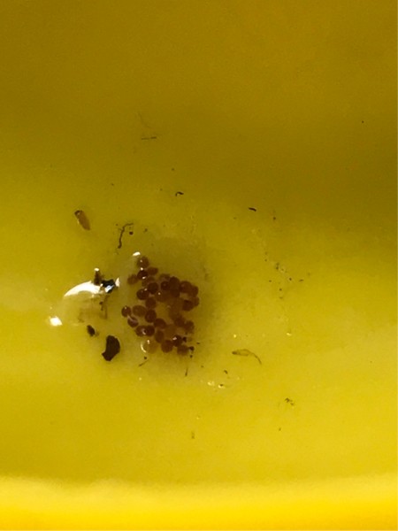 Cleaning out my squash vine Borer traps and I found a set of eggs! Ugh! Get outta there! Off they go into the toilet