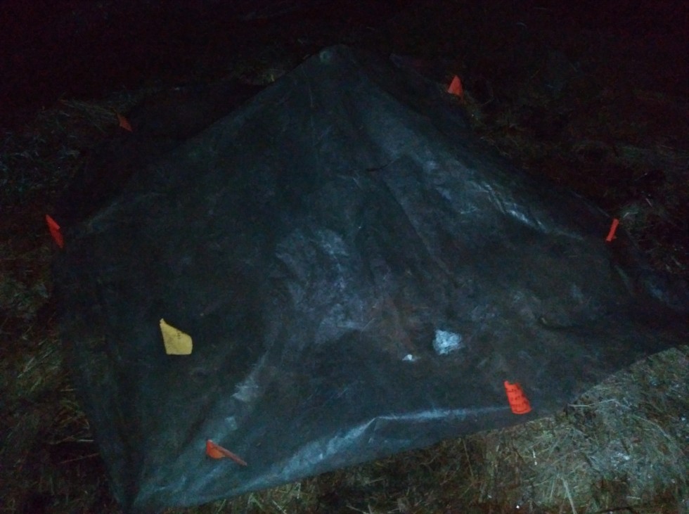 Short teepee. This one might get cooked if it ever gets up to 70 degrees outside. It wont survive a windstorm, but using the marker flags to hold the plastic was very easy.