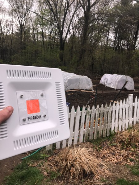 Got the lights! Two of them. Waterproof! I will bring the one in the 1911 hoop house back in for the veggies.