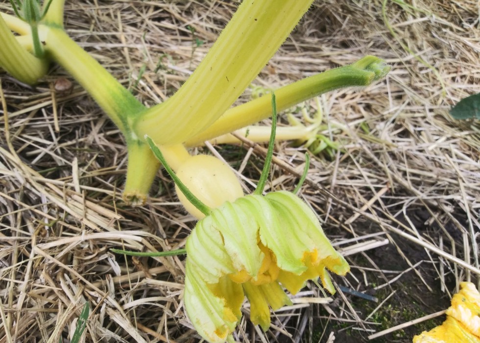-Pare the main down to just the subsequent secondary. -Pare the secondary at the pumpkin down to its first tertiary (as seen here). This could be redirected back up the plant's main... to replace old leaves and keep the plant compact.