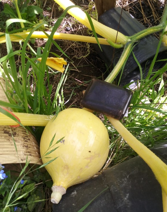 This one I waited too long. The vine wont bend easily nor will the pumpkin bend down without risk of something breaking once they get to this size.