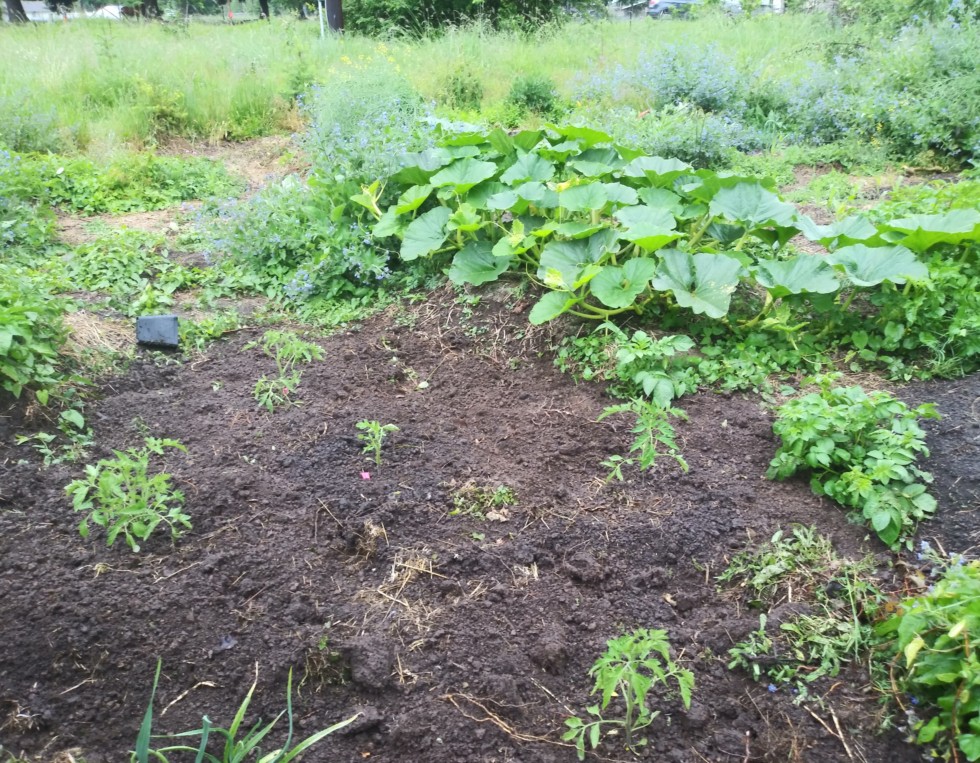 Some no-till aka worm tilled tomatoes. Too wet to till plus I want to see if they do the same of better than those which got tilled. Tilling disrupts both the good and the bad cycles hard to know if it matters in some situations it might help. I am thinking worm-tilling is better overall for me more of the time but there may also times when rotilling is useful.