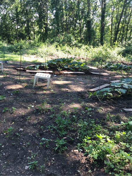 Not a ton of room for the main until it hits the fence. Going to pollinate on a very small plant I think on this one