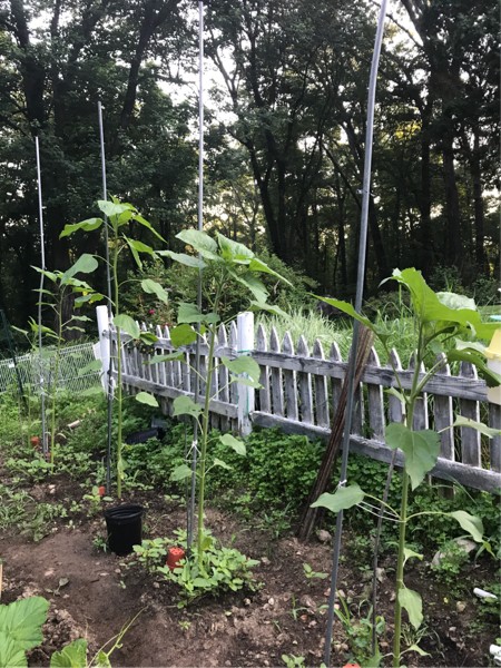 Here are some giant sunflowers. Some tall ones and giant head ones
