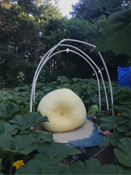 The pumpkin is getting to close to the shade structure. Gotta move it the PVC pipes.