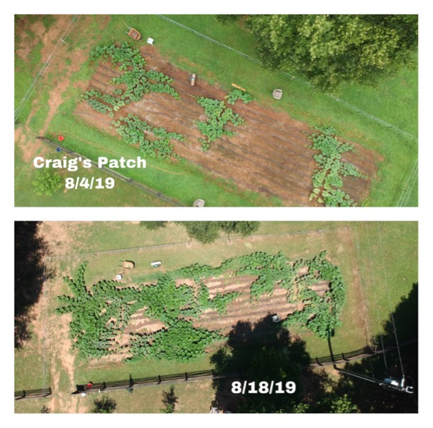 Here is a view of my patch( 3 plants) a two week progression. Leaves are back green and growing well. Females were horribly deformed two weeks ago, new ones are more normal looking. Hopefully get some pumpkins set, and have a few for The Pumpkin Derby......
