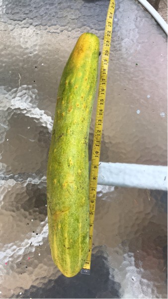 First giant cucumber coming in at 20 inches! Hoping to get a 2 footer. Plenty left that are still growing