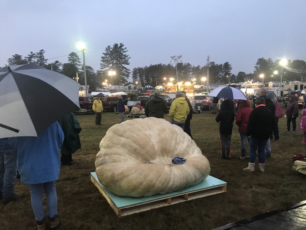 I�m here at the Deerfield fair! Terrible weather. Oh well. Some big pumpkins! Steve geddes shown here