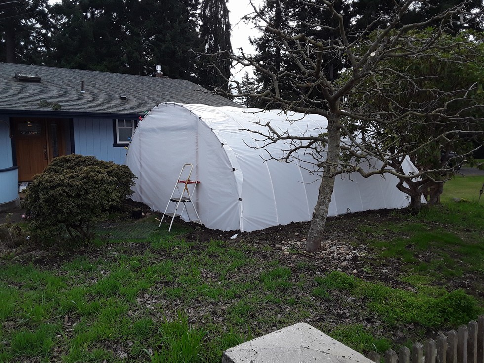 The Greenhouse is all buttoned up. Its quite the structure. Its pretty big for my residential neighborhood. But everyone in the neighborhood loves my Pumpkins so hopefully it doesn't bother anyone.