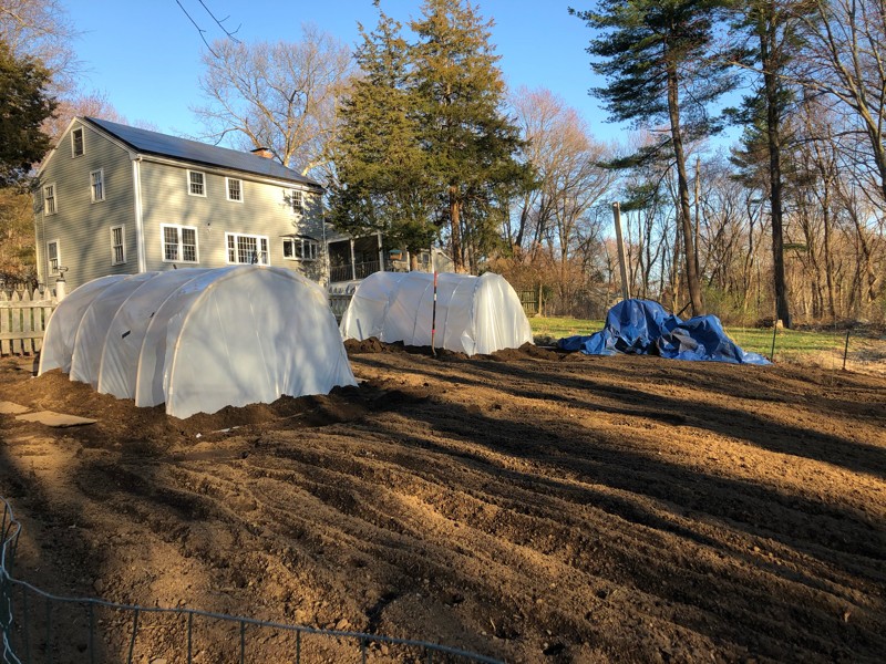 The hoops are up! Soil warming. 1 week until starting seeds. It�s go time!