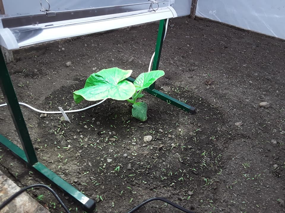 The 571 Grubbs. It has been really over cast the last few days and this plant is still getting a bit of shadow from the garage at this time of year so I moved the grow light out into the patch to help it out. I also moved the heat lamp off of the 2152 and onto this one.