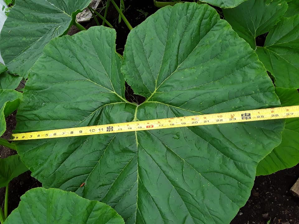 The 571 Grubs has some massive leaves on it. Well over 2 feet wide. I have stopped all nitrogen fertilizer at this point.
