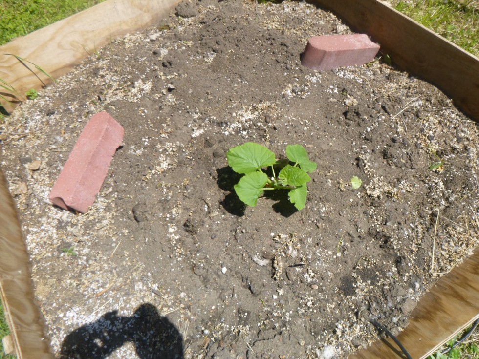 513 Weibel squash plant. It has lots of growing to do to get to 12 feet for a July 15 pollination date.