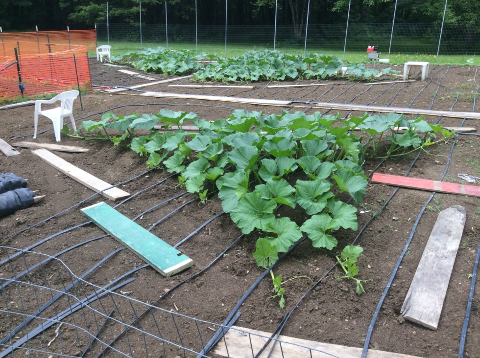 In the foreground is the 1407 Jutras squash. Still waiting for a late June pollination.